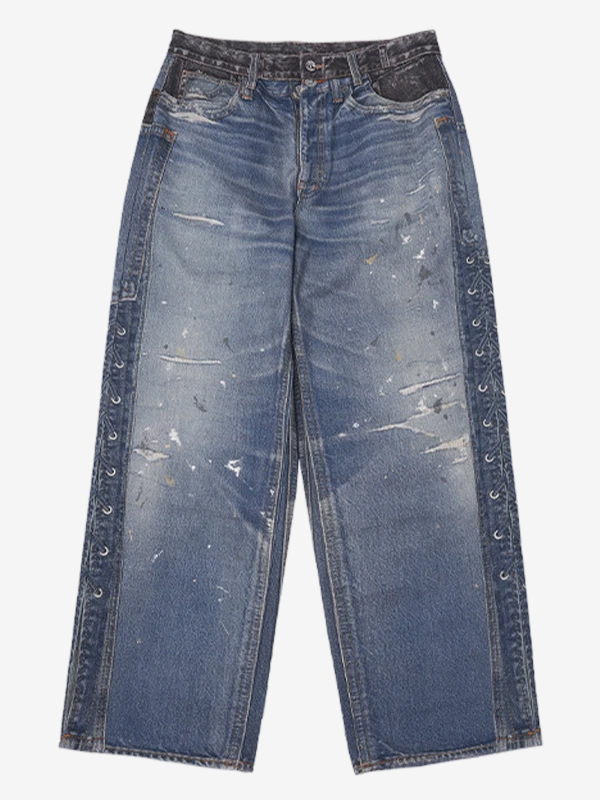 Bedruckte Jeans mit gespleißten seitlichen Taillenriemen