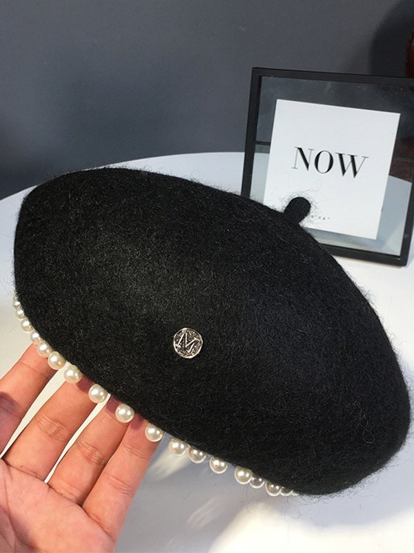 Kunstperlenverzierte Baskenmütze aus Wollmischung