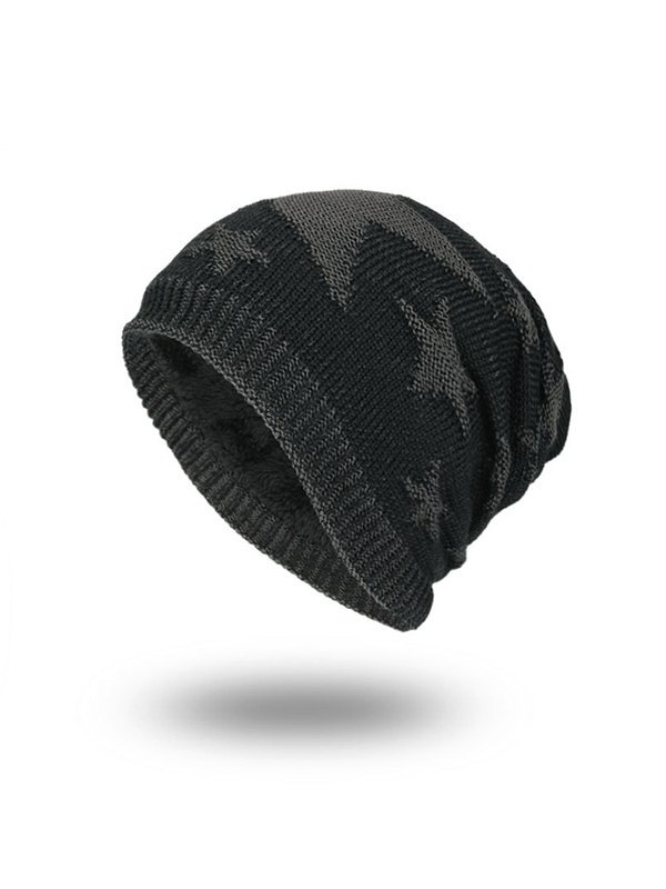 Star Jacquard Warme, mit Fleece gefütterte Beanie-Mütze