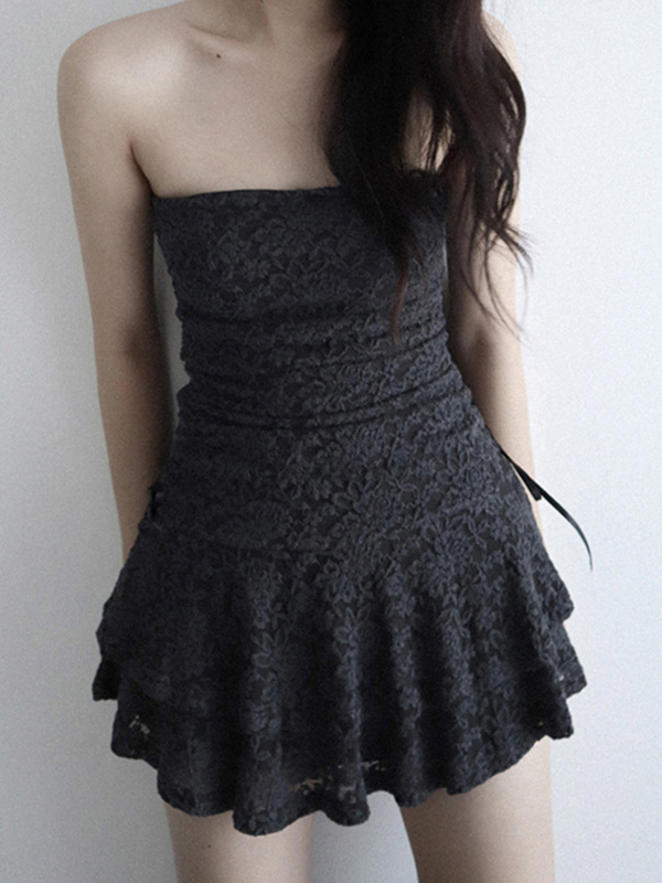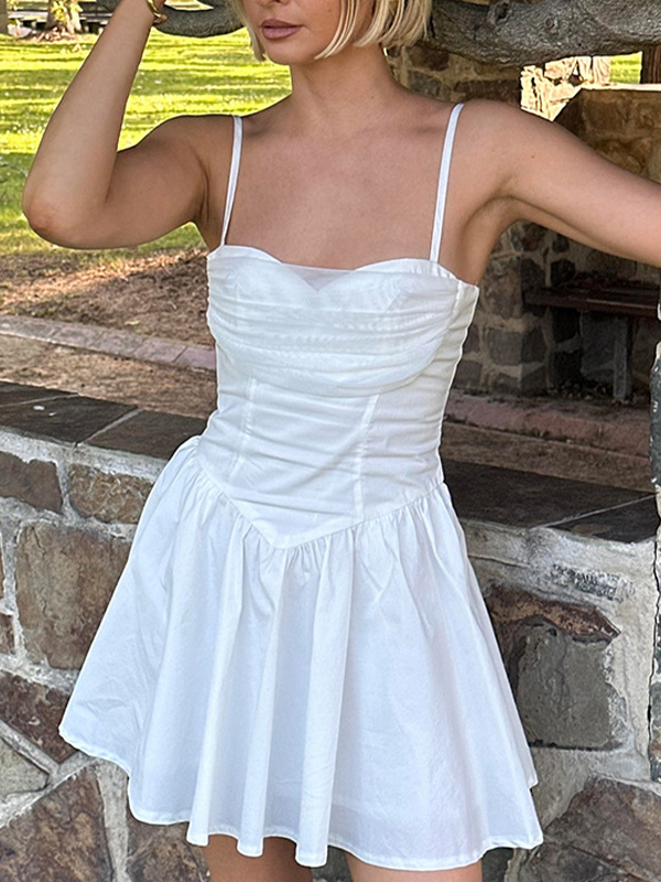 Weißes Minikleid mit Schnürung am Rücken und Spitzenbesatz