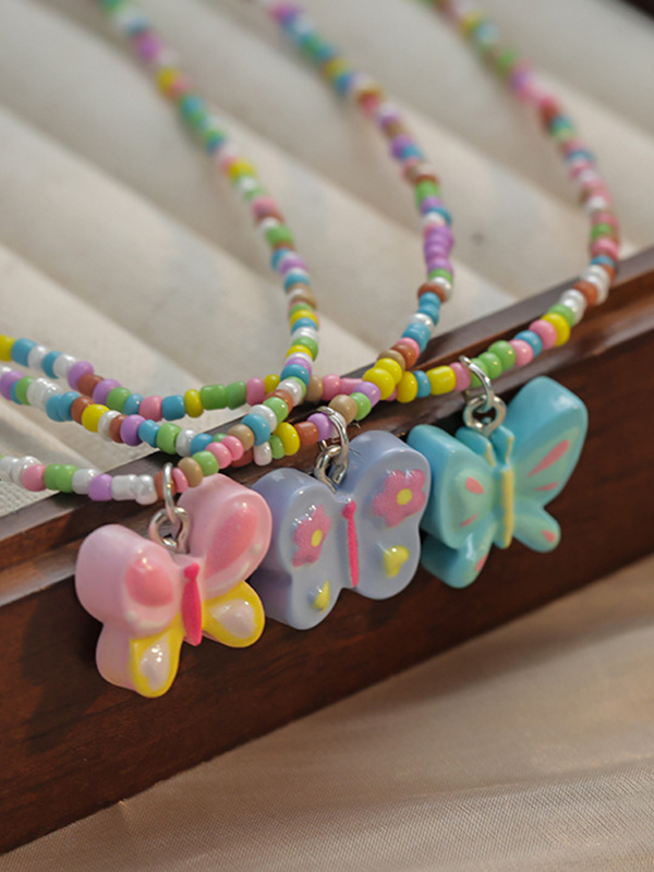 1 Stück bunte Perlen-Schmetterlings-Halskette