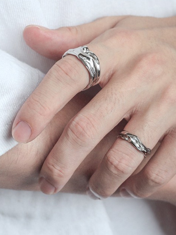 2-teiliger silberner strukturierter Manschettenring für Herren Menge