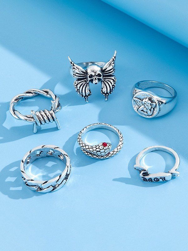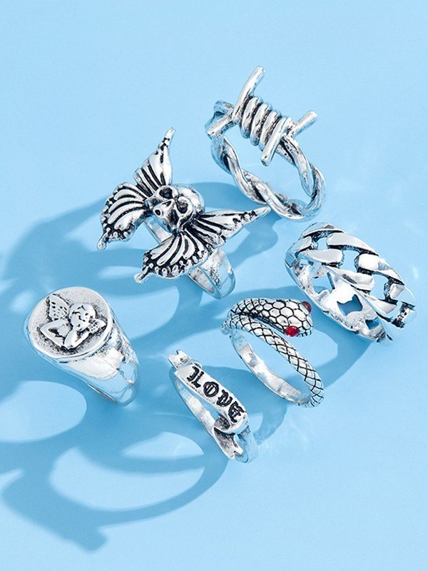 6-teiliges Vintage-Punk-Ring-Set für Herren Menge