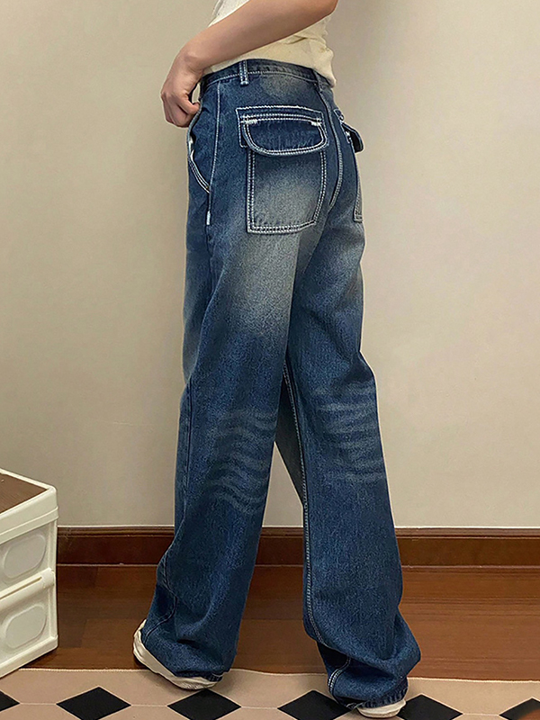 Boyfriendjeans im amerikanischen Stil mit verwaschenem Used-Look