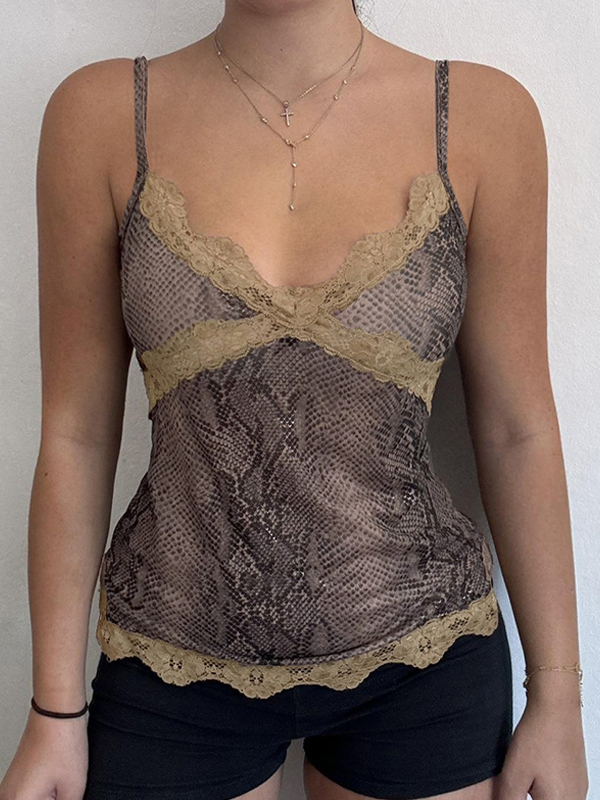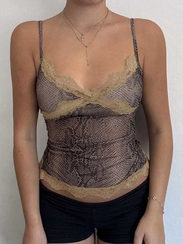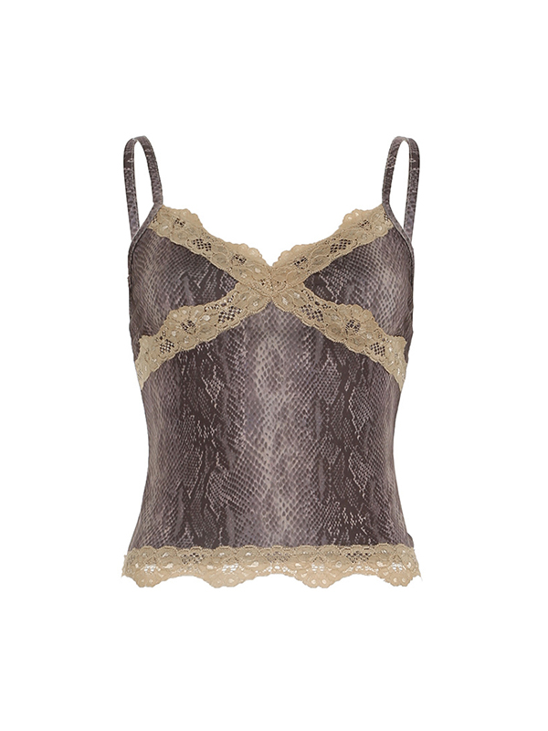 Camisole-Top mit Spitzen-Patchwork und Schlangenmuster