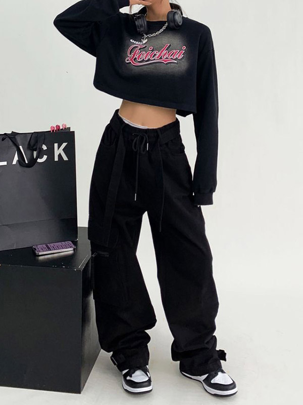 Crop-Sweatshirt mit Buchstaben-Print und lockerem Saum Menge