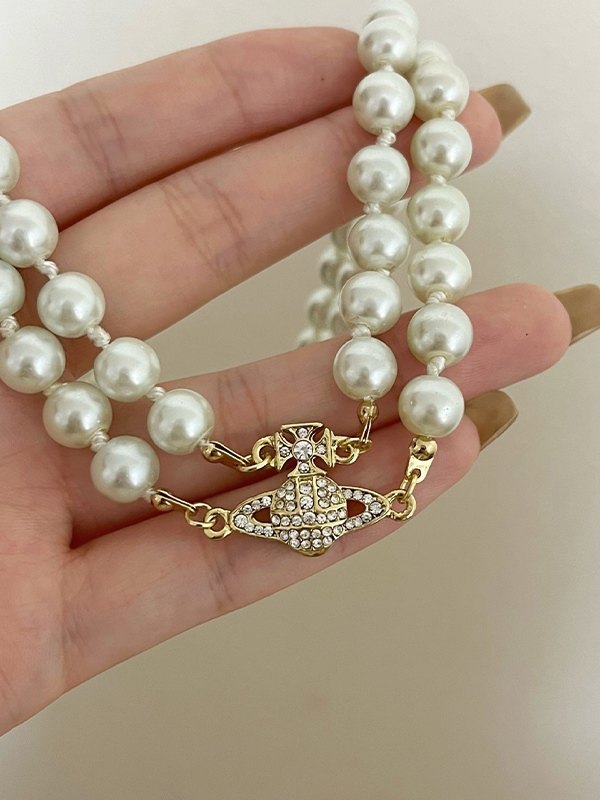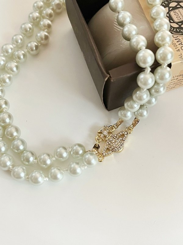 Doppellagige Faux-Perlenkette mit Strass-Charme Menge