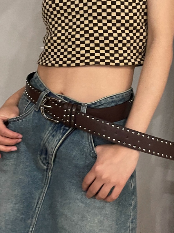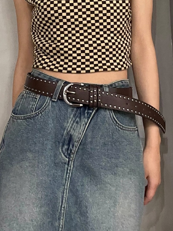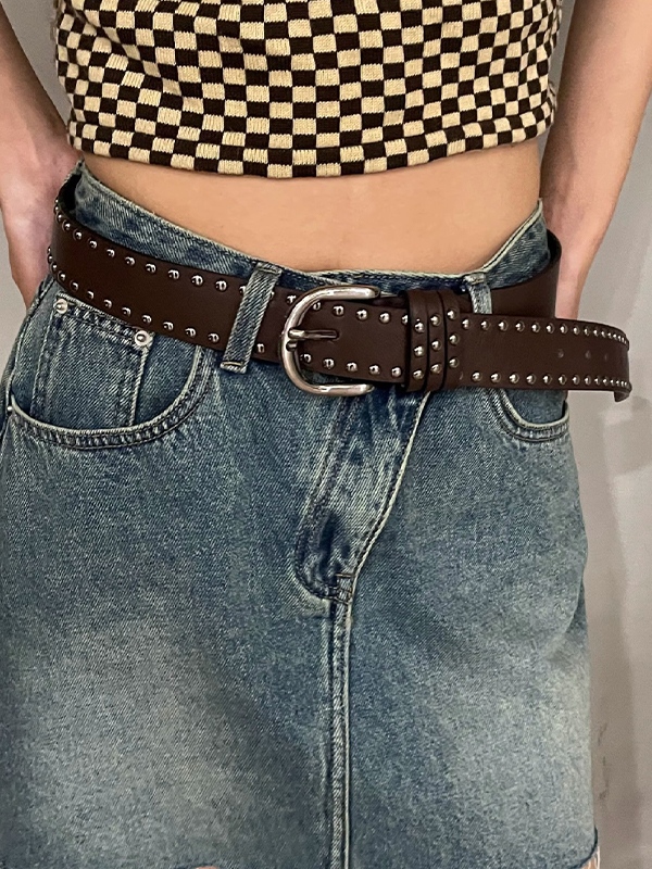 Einfarbiger Vintage-Gürtel mit Nietendekor und Schnalle