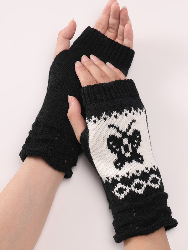 Fingerlose Handschuhe aus Jacquard-Strick mit Schmetterlingsmotiv Menge