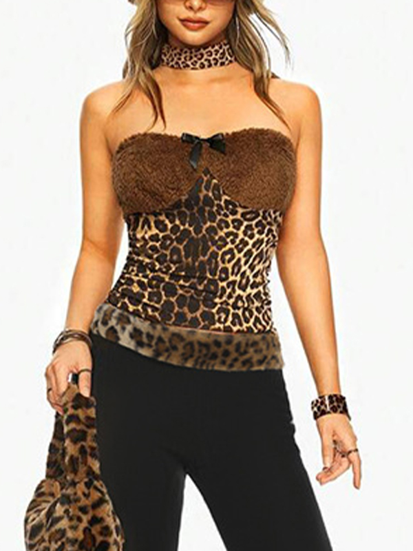 Flauschiges Patchwork-Bandeau-Top mit Brustschleife Menge