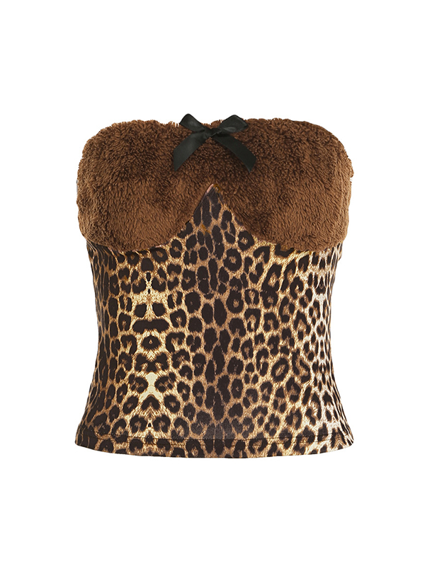 Flauschiges Patchwork-Bandeau-Top mit Brustschleife