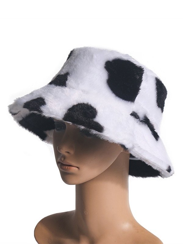Flockiger Eimer-Hut mit Kuh-Muster Menge