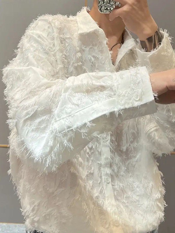 Fuzzy Langarm-Button-Down-Hemd für Herren