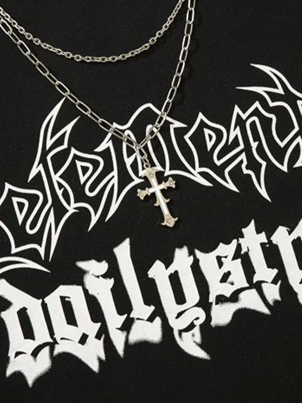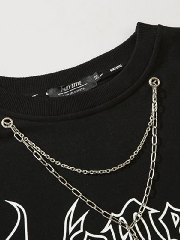 Gefälschte zweiteilige Loch Design Kette lose dunkle Print Sweatshirt