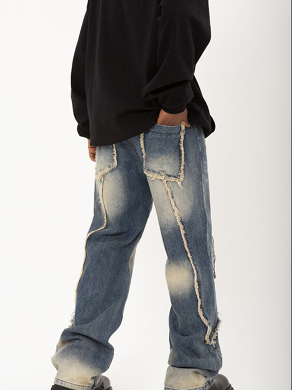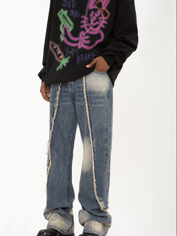 Gerade geschnittene Jeans mit hoher Taille und fließendem Bart Menge