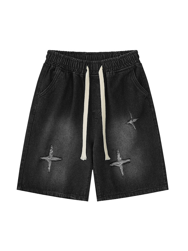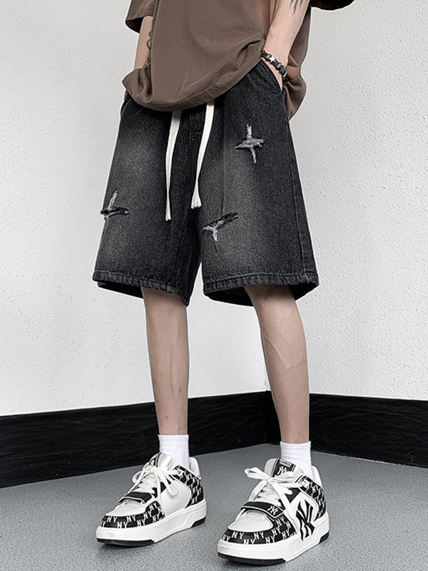 Gerade Jeansshorts für Herren mit verwaschenem, zerrissenem Schnitt