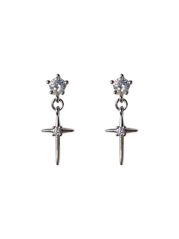 Glänzender Ohrstecker mit Kreuzanhänger Menge