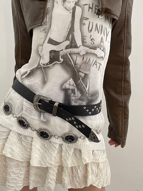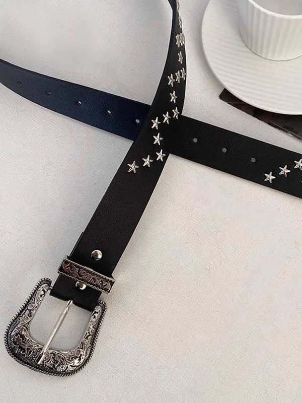 Gürtel mit gravierter Schnalle im Vintage-Stil mit Sterndekor