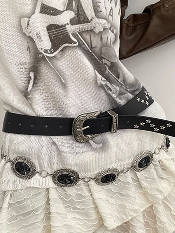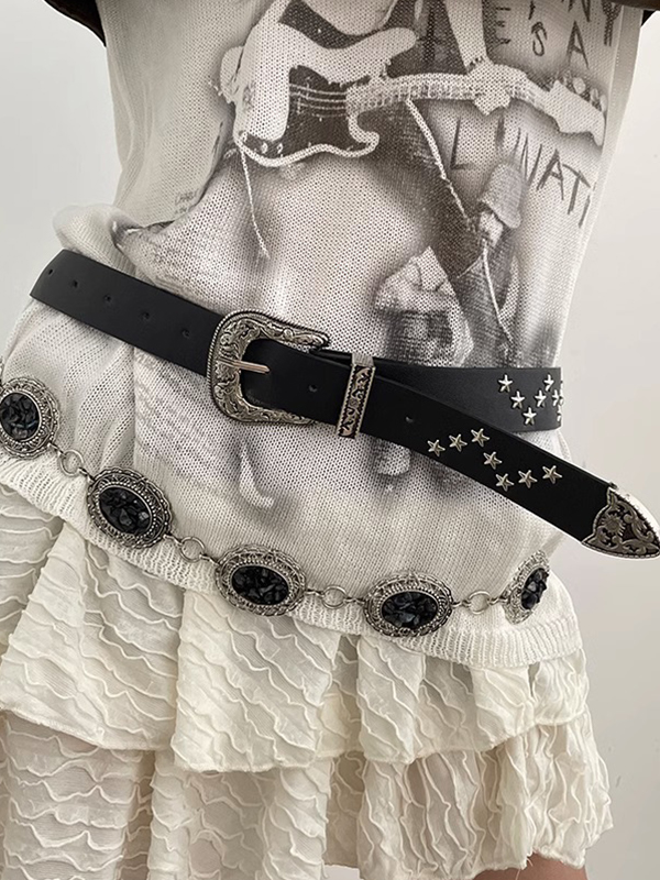 Gürtel mit gravierter Schnalle im Vintage-Stil mit Sterndekor Menge