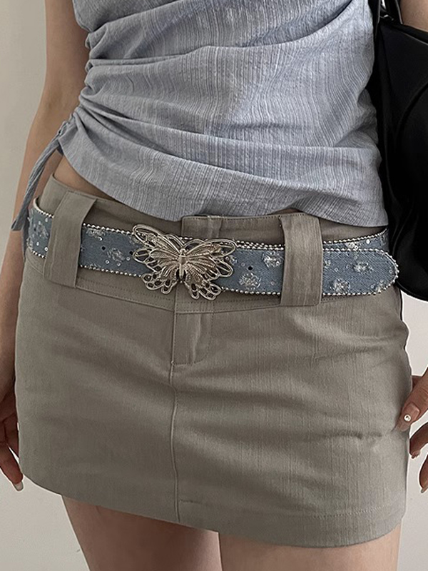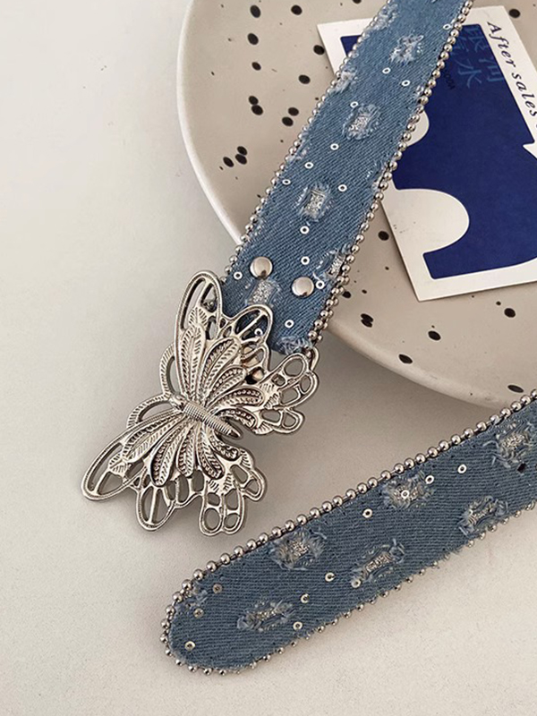 Jeansgürtel mit Schmetterlingsschnalle und Paillettenverzierung