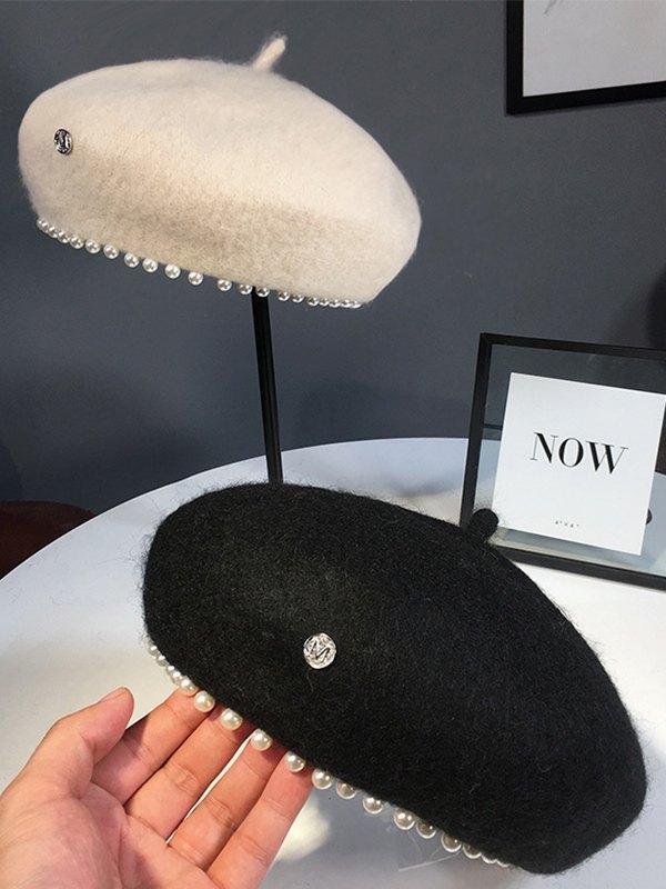 Kunstperlenverzierte Baskenmütze aus Wollmischung Menge