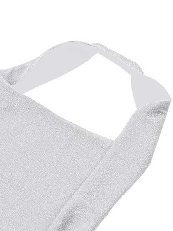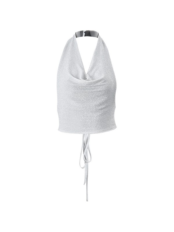Kurz geschnittenes Trägershirt in Metallic-Silber mit Neckholder Menge