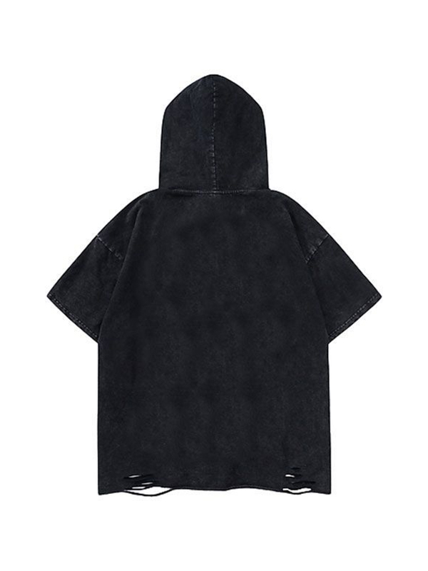 Kurzärmliges Herren-T-Shirt mit Distressed-Print und Tattered-Saum-Kapuze Menge