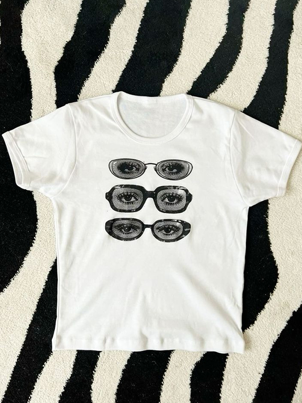 Kurzärmliges T-Shirt mit Brillen-Print