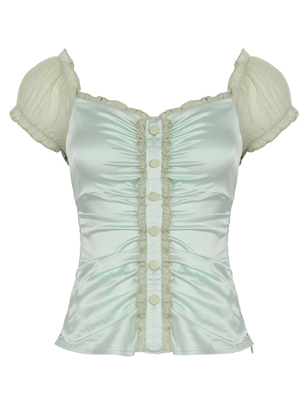 Kurzärmliges T-Shirt mit Rüschen aus Mesh-Patchwork Menge