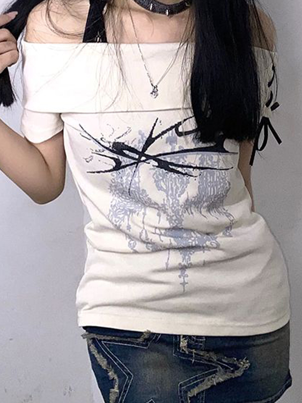 Kurzarm-T-Shirt mit One-Shoulder-Print