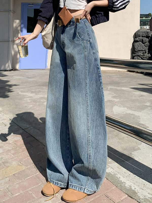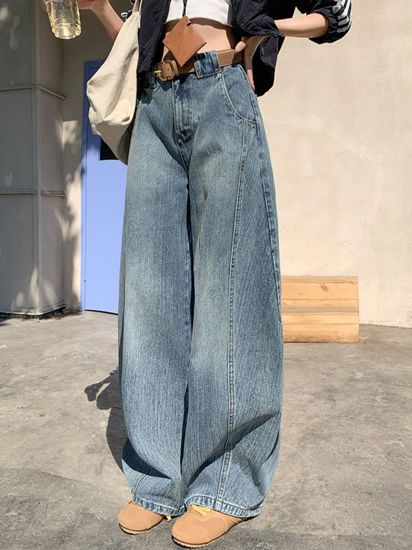 Lässige Sichel-Boyfriendjeans mit weitem Bein