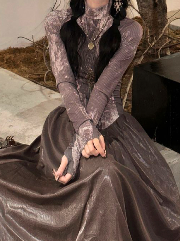 Langärmliges Maxikleid mit Spleißmuster und Stammesmuster