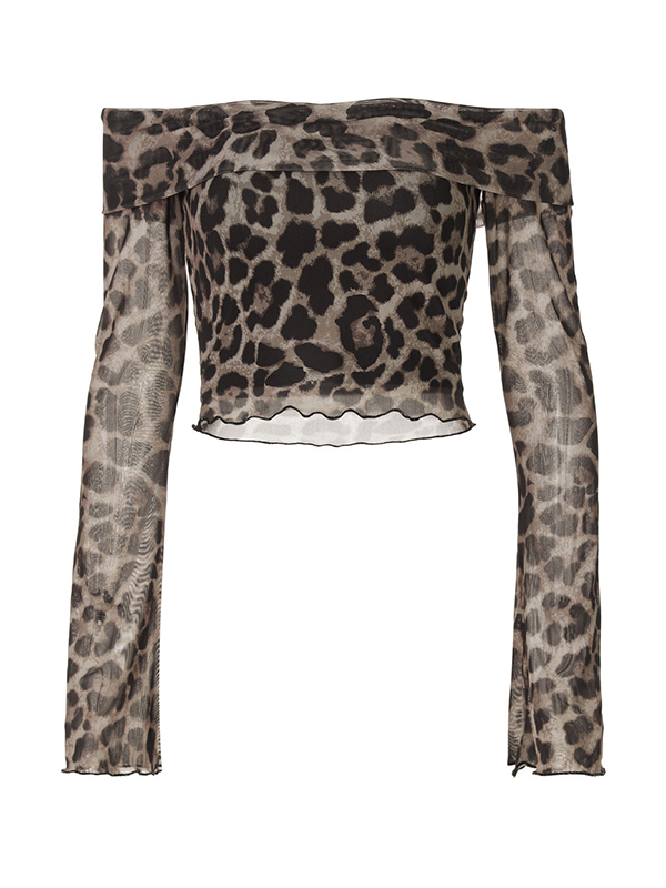 Langarm-T-Shirt mit Leopardenmuster und einer Schulter