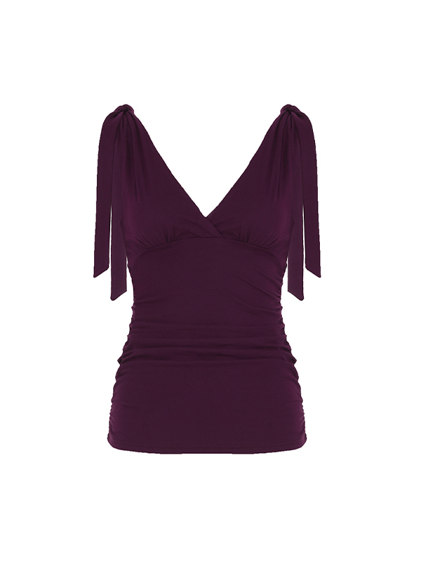 Lilafarbenes Vintage-Tanktop mit V-Ausschnitt und Crossover Menge