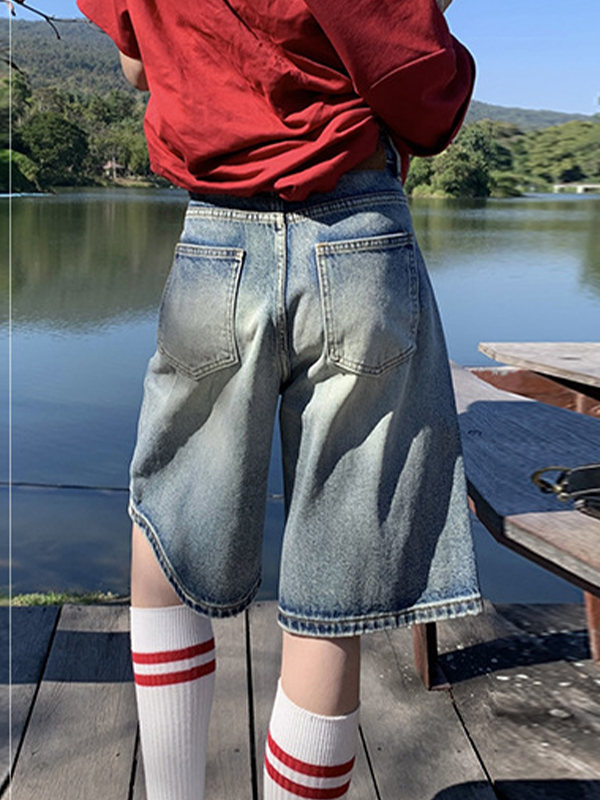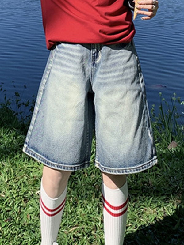 Locker sitzende Jeansshorts mit weitem Bein Menge