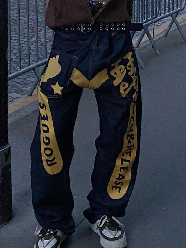 Lockere Jeans für Herren mit Totenkopf-Buchstaben-Print
