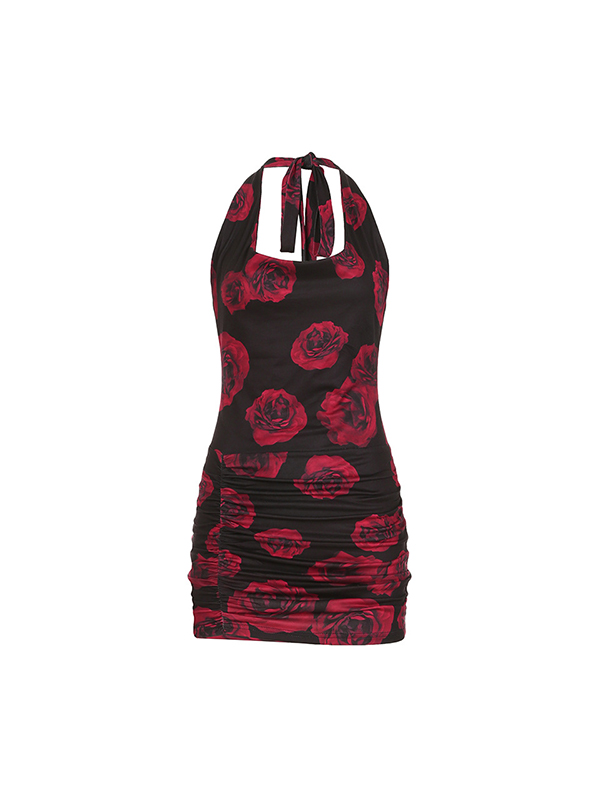 Minikleider mit Blumenmuster und Krawatte