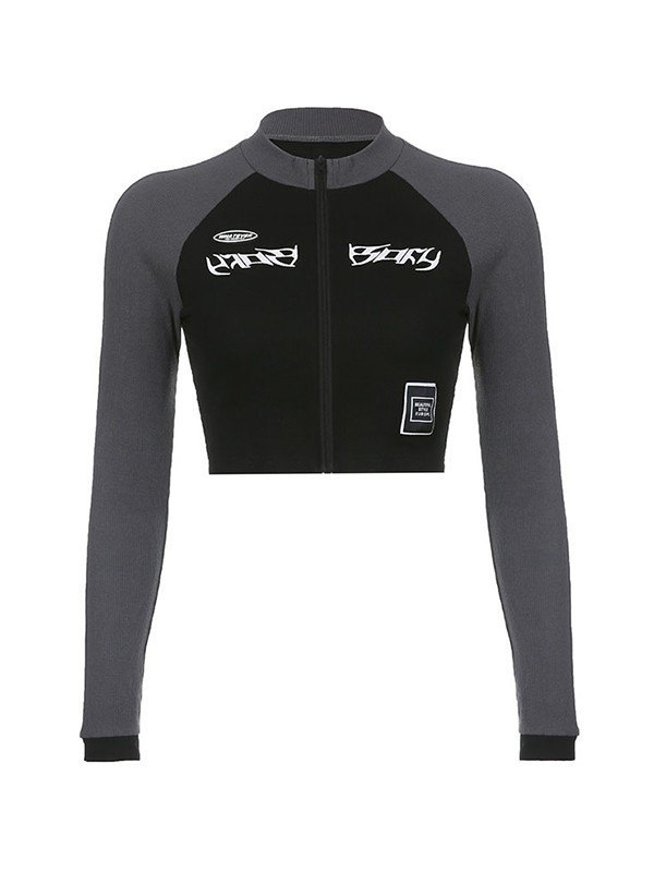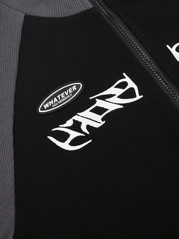 Patchwork-Reißverschluss mit langen Ärmeln