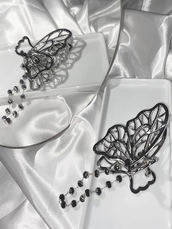Perlenkette Dekor Schmetterling Haarkralle