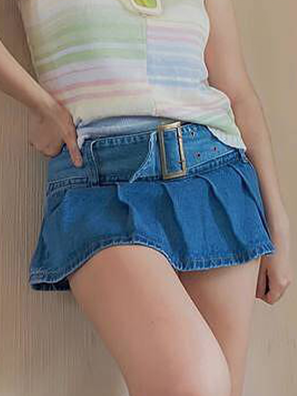 Plissierter Denim-Mikro-Skort mit niedriger Leibhöhe