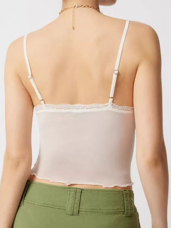 Schlichtes, schmal geschnittenes Cami-Oberteil aus Netzstoff mit V-Ausschnitt