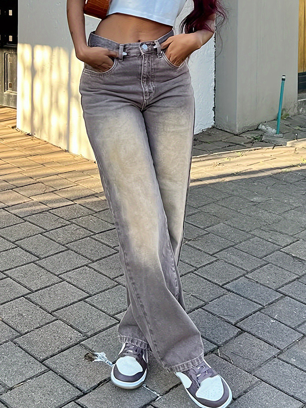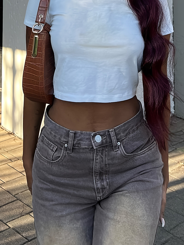 Schmale verwaschene Boyfriendjeans mit hoher Taille
