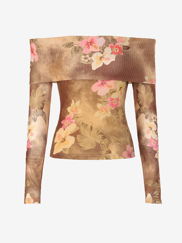 Schulterfreies Top mit langen Ärmeln und Vintage-Blumendruck Menge