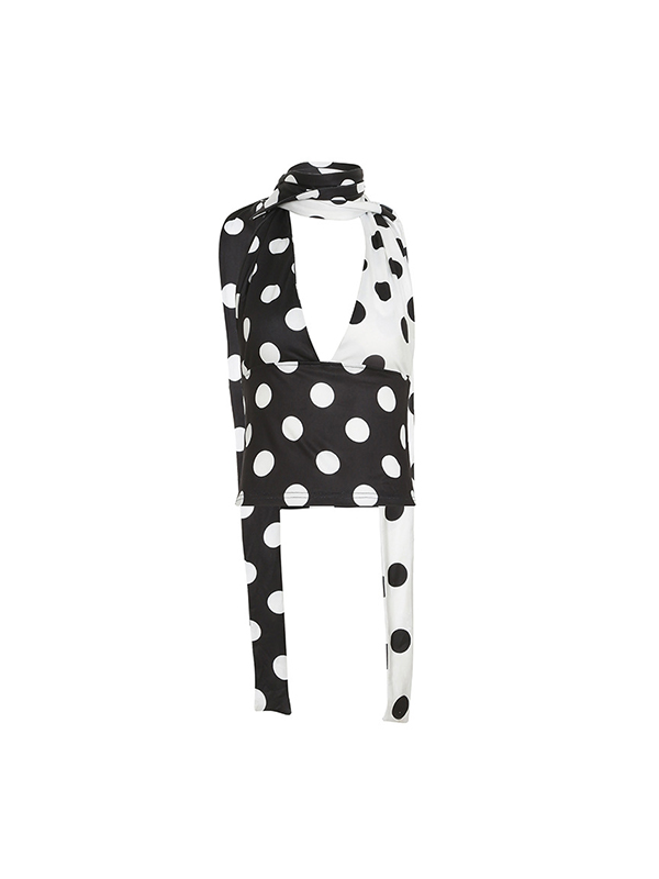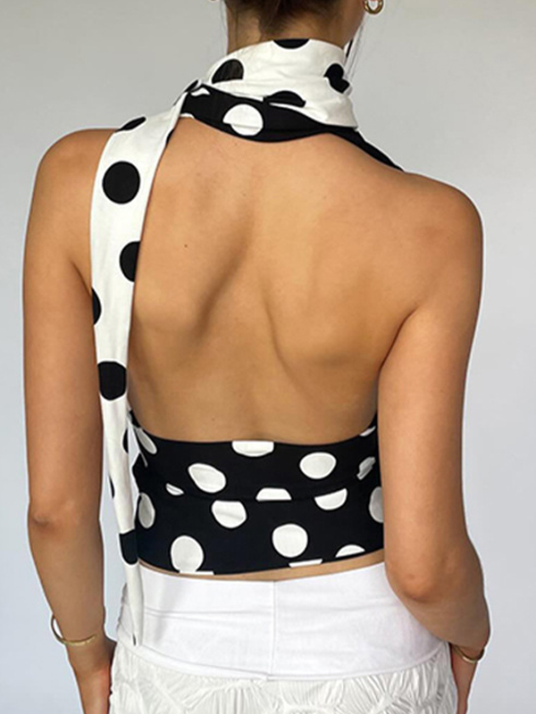 Sexy Neckholder-Weste mit Polka Dot-V-Ausschnitt