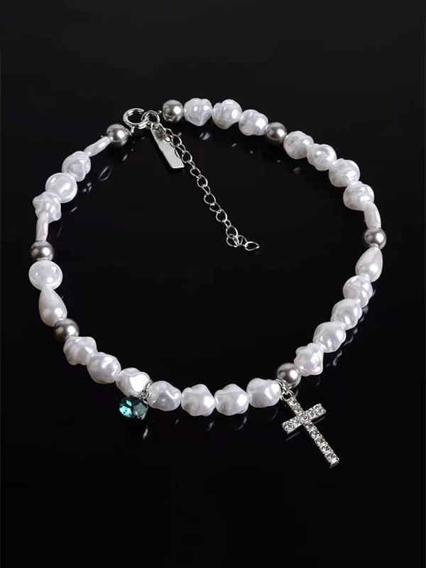 Strass-Kreuz-Anhänger Faux-Perlen-Halskette Menge