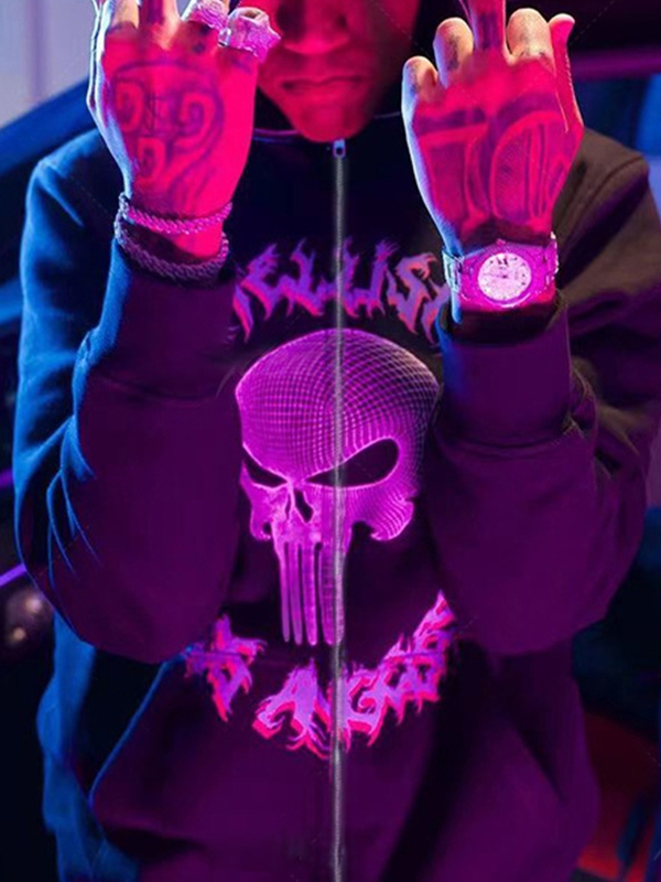 Übergroßer Kapuzenpullover mit Rock-Skull-Print für Herren