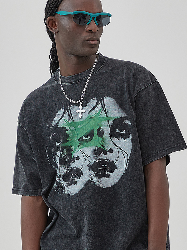 Übergroßes, kurzärmliges T-Shirt mit abstraktem Druck für Herren Menge
