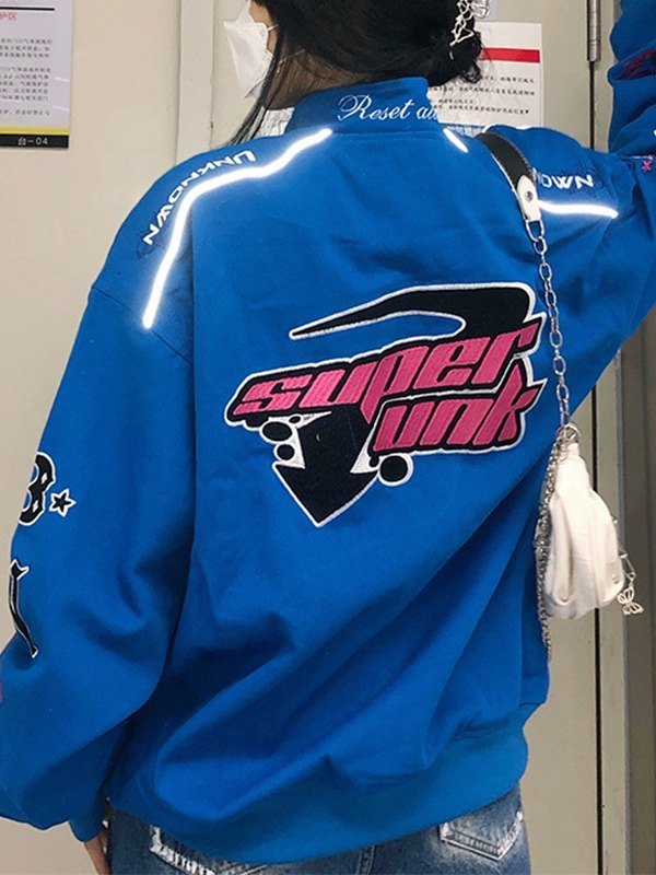 Vintage bestickte Button-Down-Motorrad-Varsity-Jacke