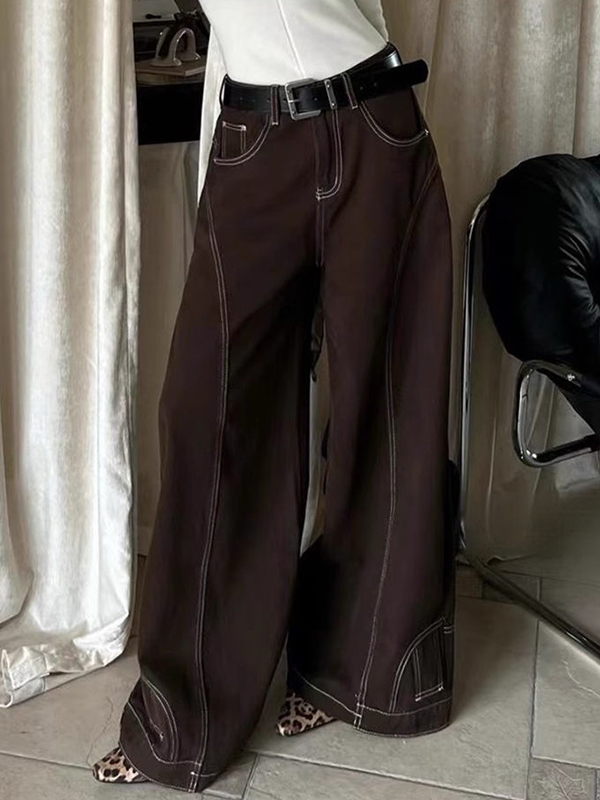 Vintage Braune Boyfriendjeans mit weitem Bein Menge