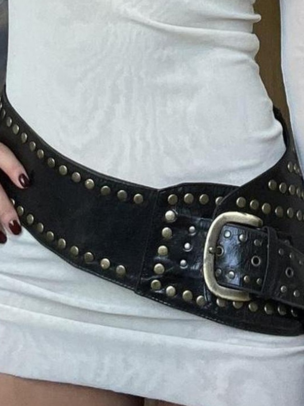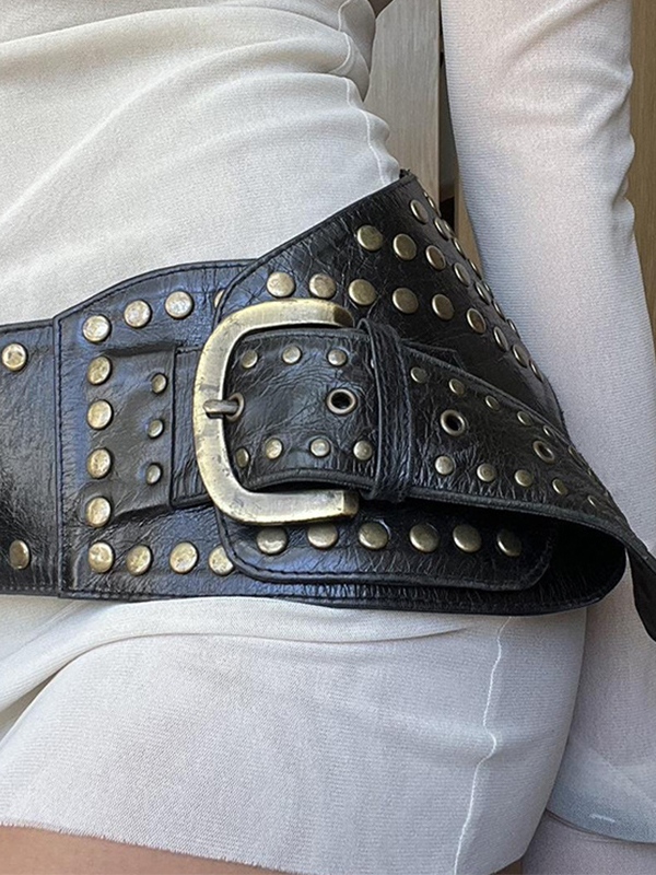 Vintage-Gürtel mit breiter Schnalle und Ösennietendekor